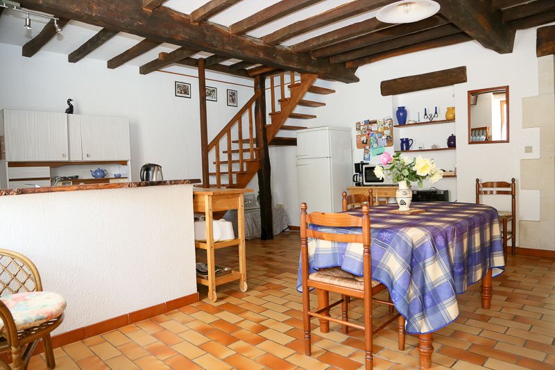 The spacious dining room with kitchen area is well equipped with a large fridge/freezer, a gas cooker with electric grill, coffee maker, toaster etc. and all utensils. An open staircase from the dining room leads upstairs to the bedrooms. Exposed beams are featured within the property with comfortable and good quality furnishings throughout. The dining room leads on to the sitting room.